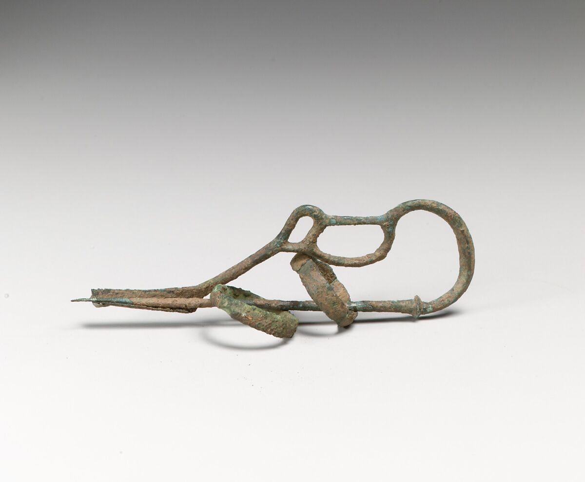 - Title: Bronze serpentine-type fibula (safety pin) with two rings