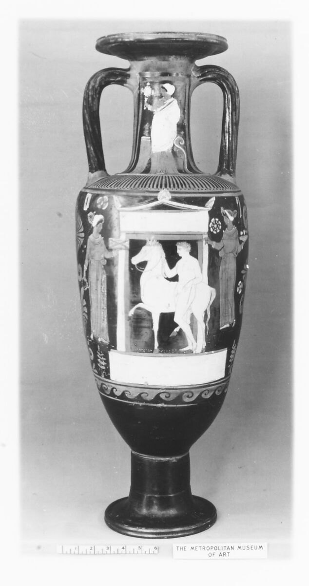 Ownership of a horse was a mark of wealth and status. It is noteworthy that the horse here is primary and that the group is not fully contained by the structure.