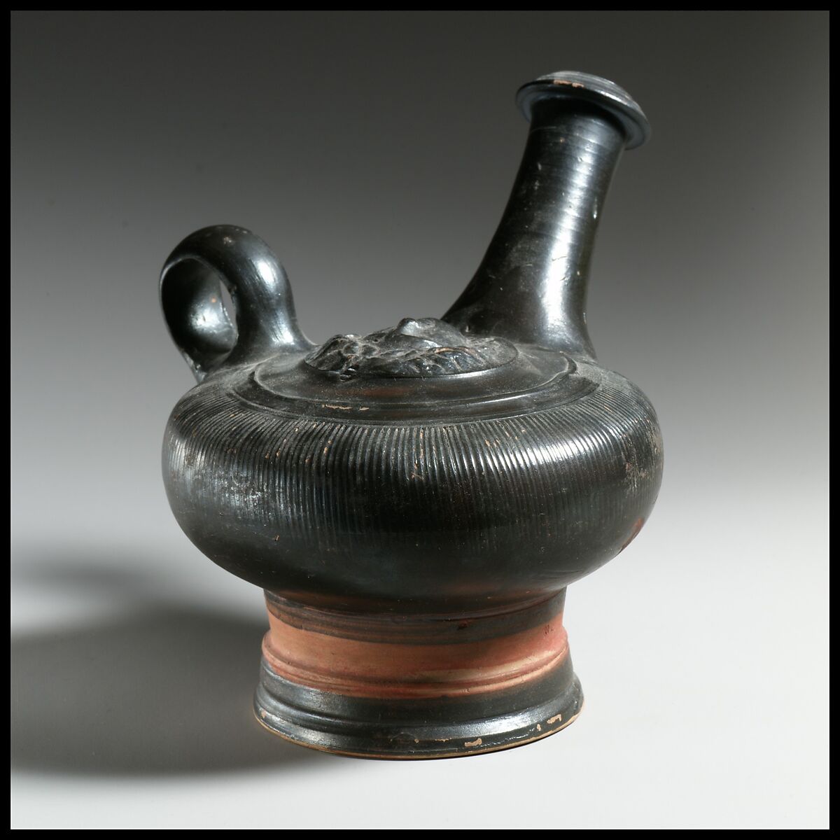 - Title: Terracotta guttus (flask with handle and vertical spout)