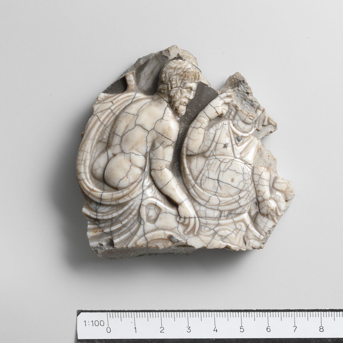 The scene may represent an episode from the story of Proserpine (Gr. Persephone) and Pluto (Gr. Hades). Mythological scenes are rare on such large cameos; most of the surviving examples depict members of the Roman imperial family.