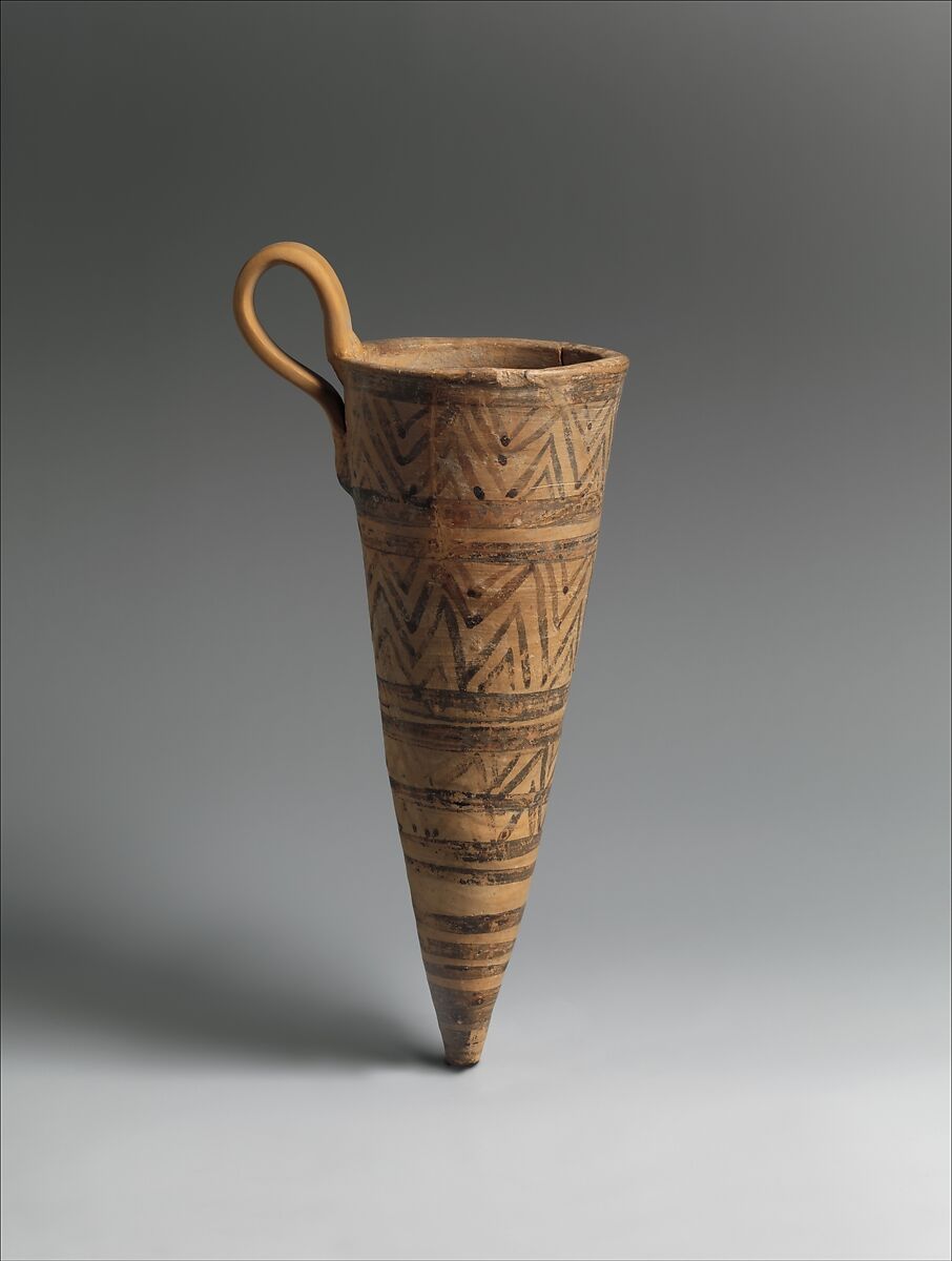 - Title: Terracotta conical rhyton (vase for liquid offerings)