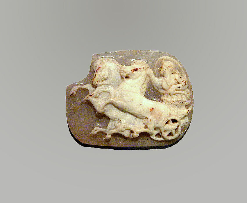 Cameo with a winged woman driving a two-horse chariot. Aurora, Victory, or Psyche.