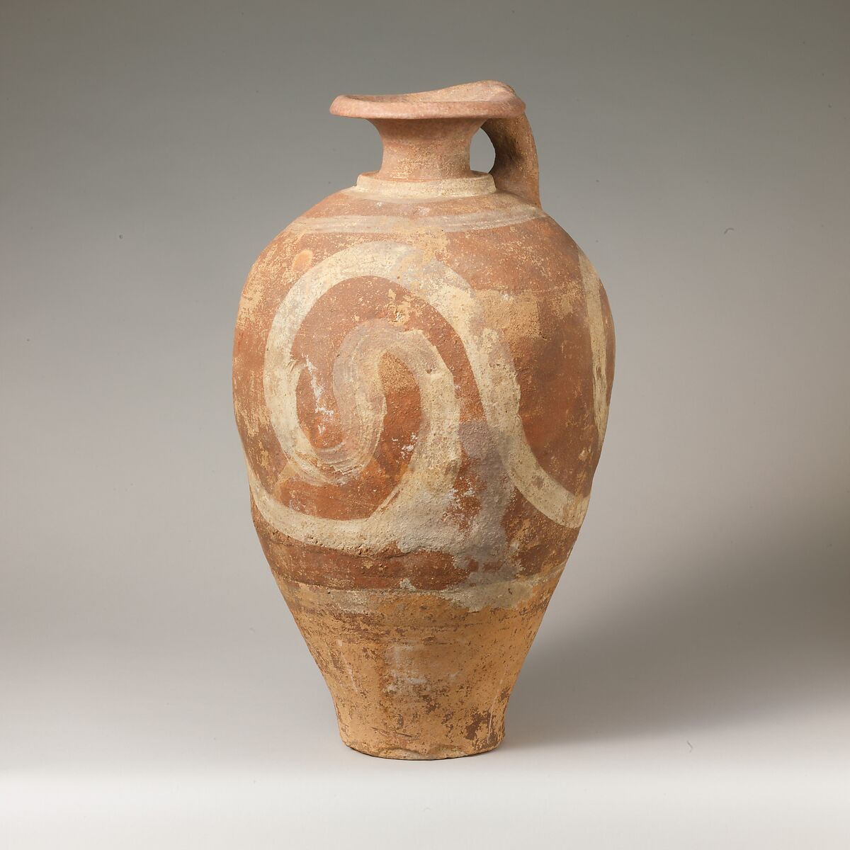 Numerous examples of this type of jug were excavated in the Temple Repositories at Knossos.