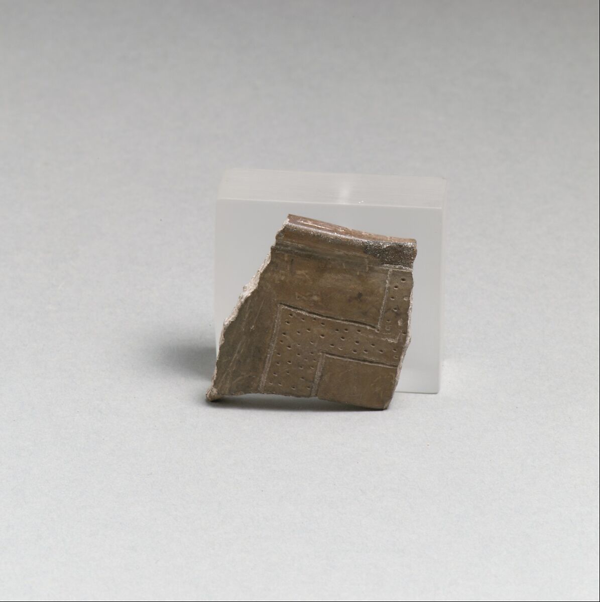 - Title: Terracotta rim fragment with incised lines and punctations