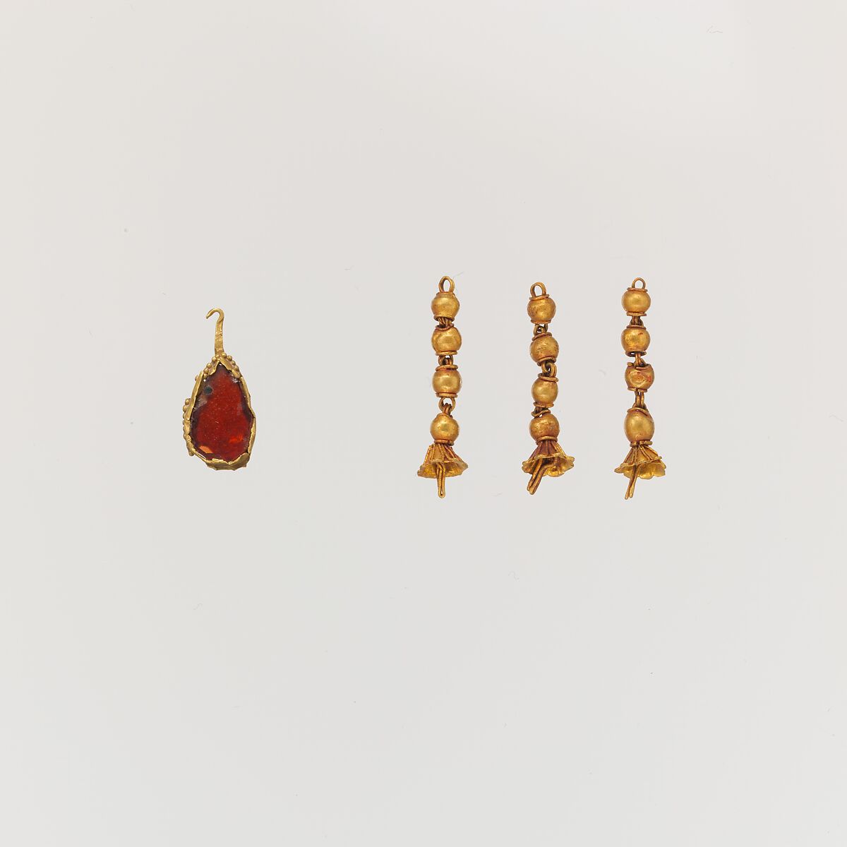 - Title: Gold pendant with garnet and three gold tassels