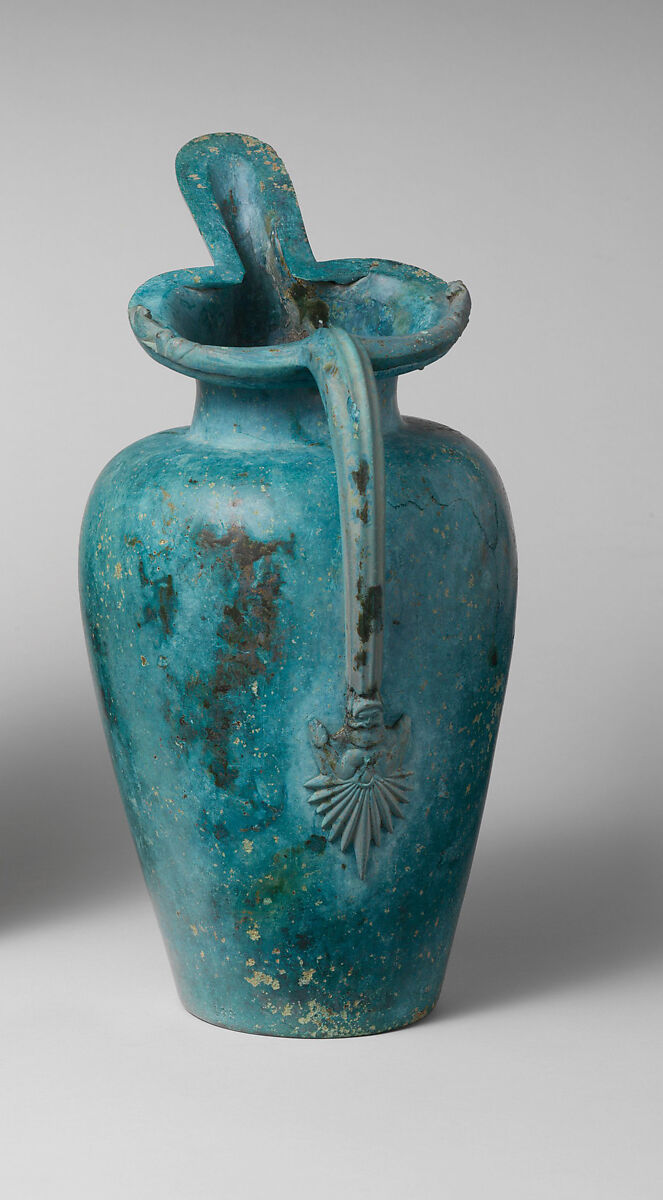 This type of beaked jug was probably produced in Vulci. It was exported to many sites in Italy and Central Europe, especially to the Celtic peoples living in the areas of present-day France and Germany.