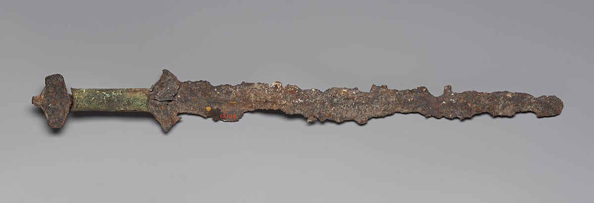 Long swords like this one were a typical weapon of the Gauls who populated southern France before the Romans. The Museum's statue of a fighting Gaul on display in the northern end of the Roman court would have been fighting with such as blade, as his sword belt indicates.
