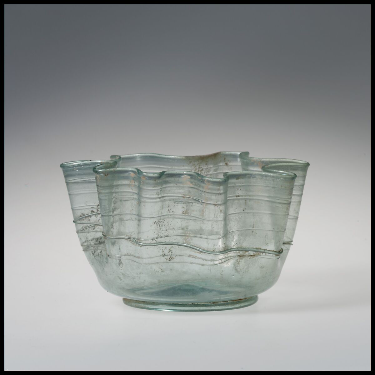 Vessels that have been deliberately worked to create a wavy rim and sides are extremely rare in Roman glassware. This bowl is perhaps the best example known to have survived.