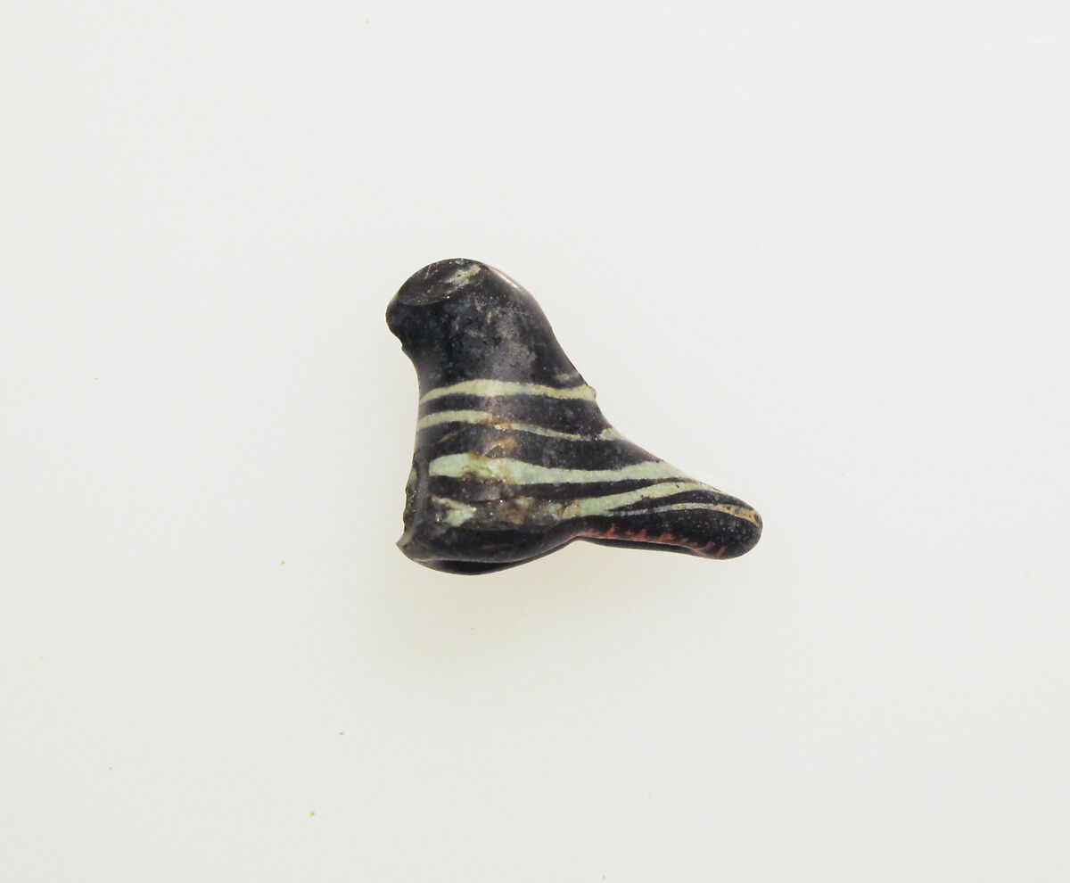 Some chips in body, especially at eyes, and suspension loop missing; slight pitting and weathering.