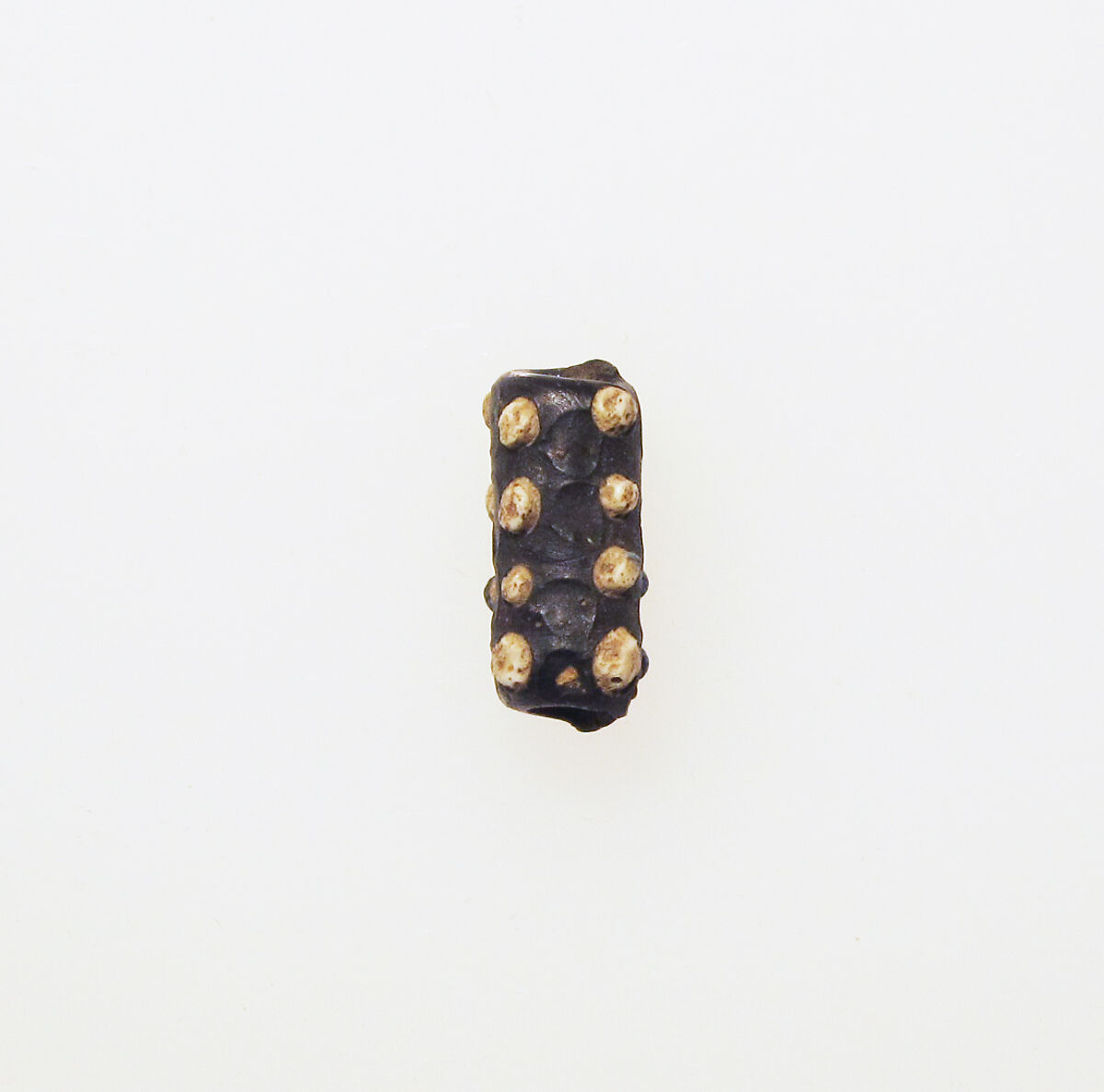 Cylindrical, with rounded edge at both ends; large hole running vertically through bead.