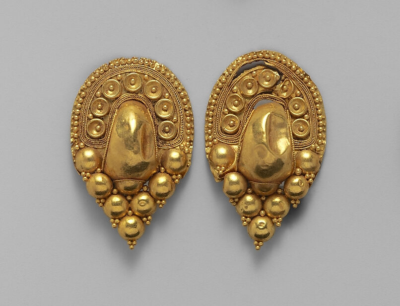 This type of earring is called a grappolo (in Italian, like a grape-cluster) because its general shape resembles a bunch of grapes.