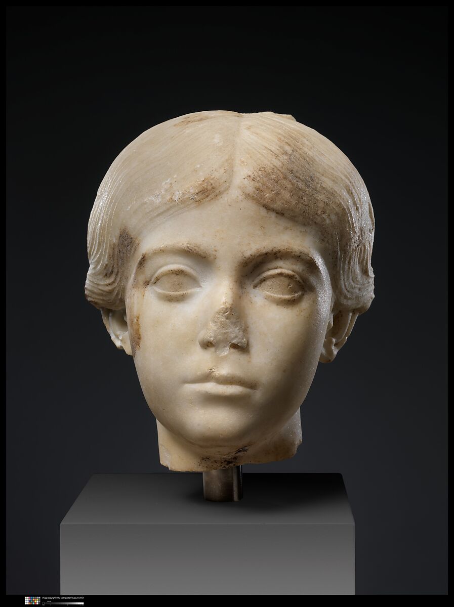 The sculptural style of these heads, characterized by smooth features and fashionable hairstyles, is one of refined Augustan classicism. The portraits, probably of mother and daughter, are from a funerary relief that might have included likenesses of other members of the family.