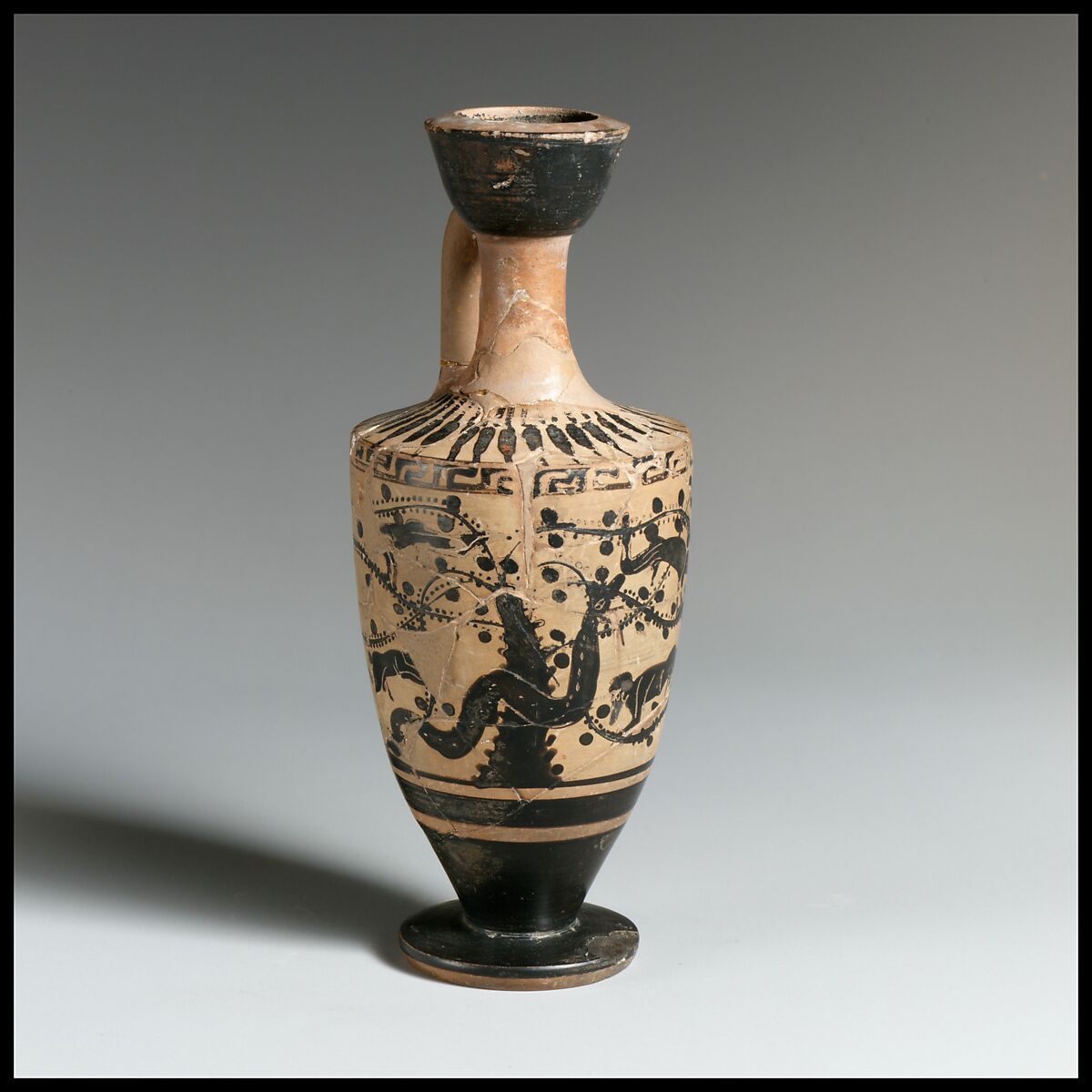 - Medium: Terracotta; black-figure, white-ground