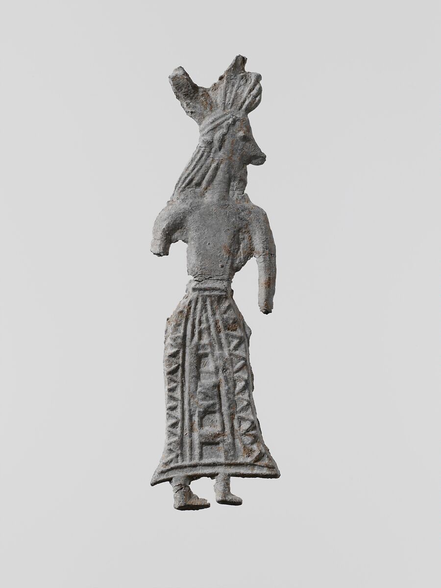 Small flat votive figurines of cast lead have been found in great quantities at the ancient sanctuaries of Laconia; over one hundred thousand, dating from the seventh century B.C. to the Classical period, were dedicated to the goddess Artemis Orthia in Sparta.
