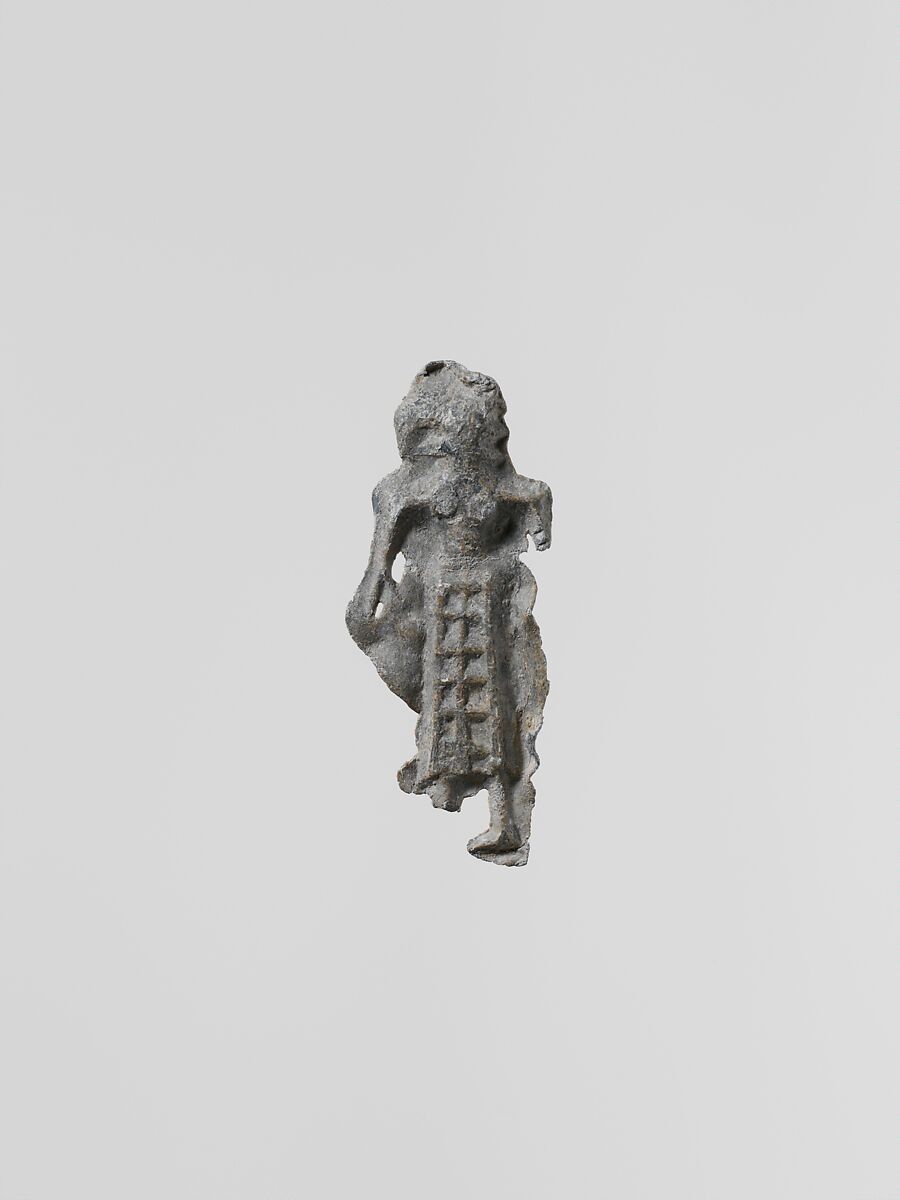 Small flat votive figurines of cast lead have been found in great quantities at the ancient sanctuaries of Laconia; over one hundred thousand, dating from the seventh century B.C. to the Classical period, were dedicated to the goddess Artemis Orthia in Sparta.