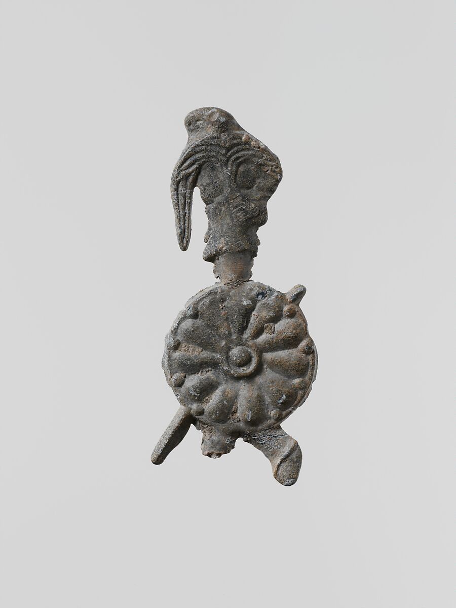 - Title: Lead figure of a warrior with a helmet, shield, and spear