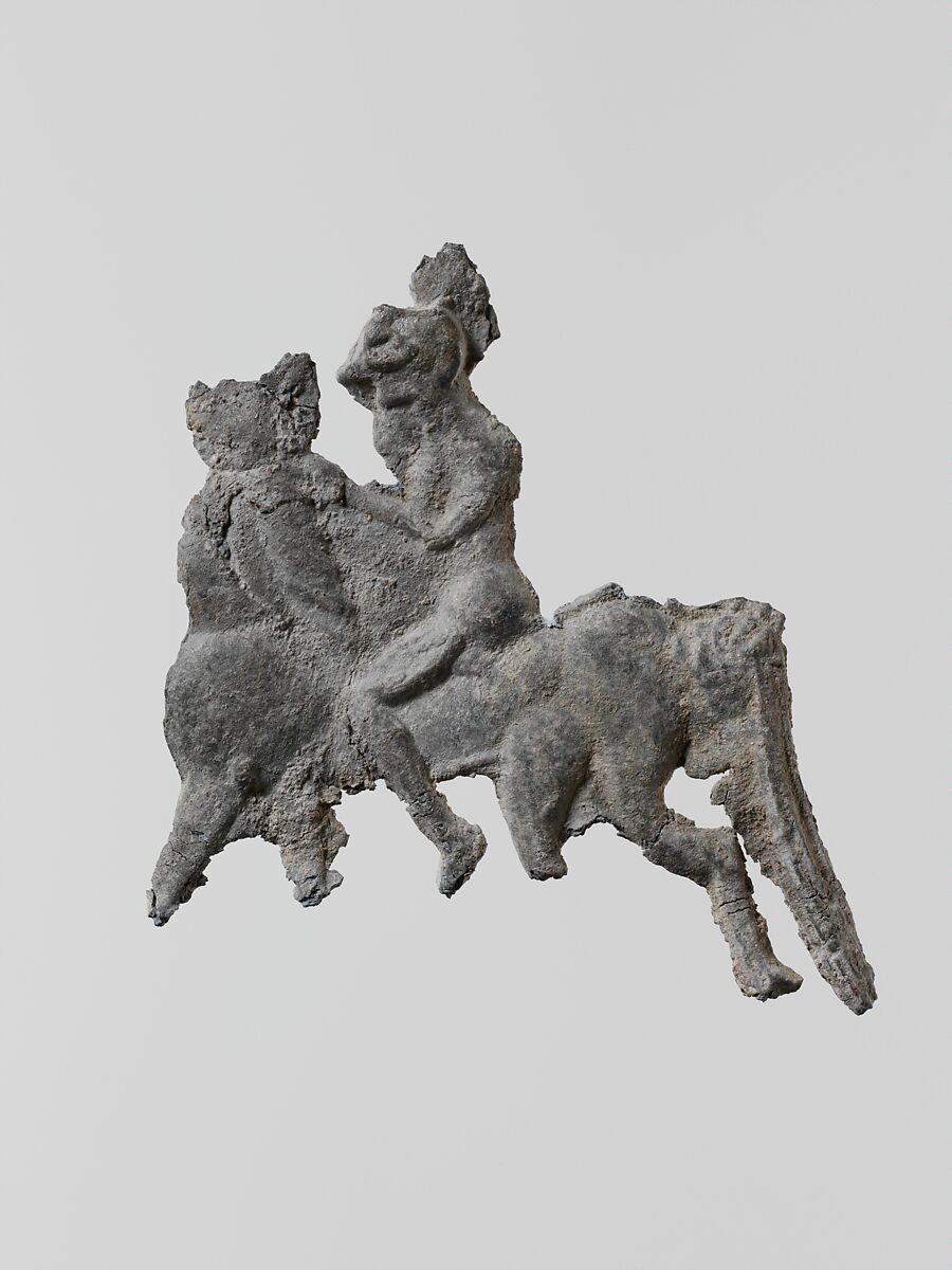 Small flat votive figurines of cast lead have been found in great quantities at the ancient sanctuaries of Laconia; over one hundred thousand, dating from the seventh century B.C. to the Classical period, were dedicated to the goddess Artemis Orthia in Sparta.