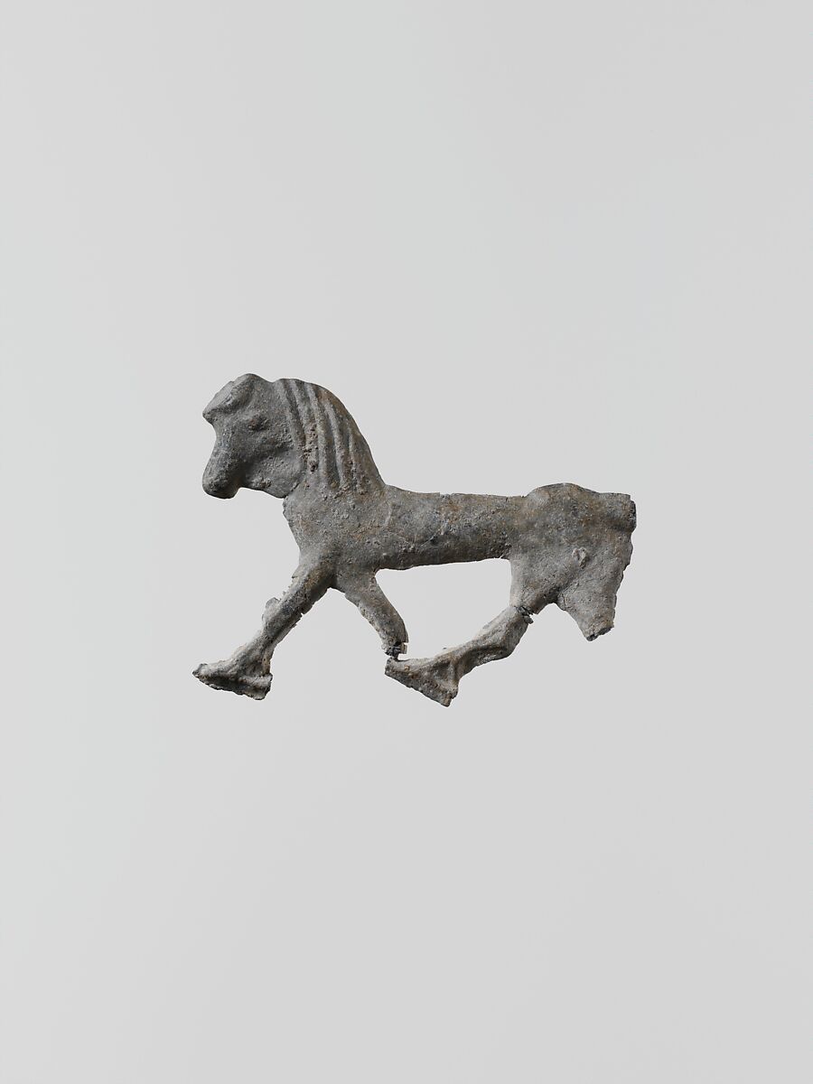 Small flat votive figurines of cast lead have been found in great quantities at the ancient sanctuaries of Laconia; over one hundred thousand, dating from the seventh century B.C. to the Classical period, were dedicated to the goddess Artemis Orthia in Sparta.