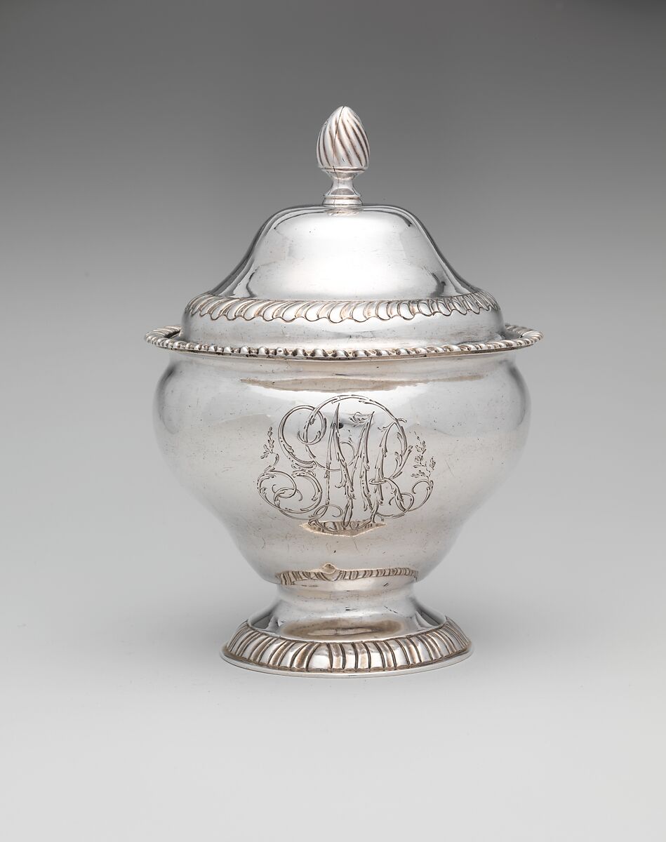 This sugar bowl is one piece of a four piece tea service (40.57.1–.4) owned by a Samuel Read, ancestor of Alice Read Oliphant Paul (see provenance). The initials “SMR” on each piece of the service are thought to be those of Samuel Read and his wife (M), whom we have yet to identify. The sugar bowl was made by Thomas Shields (1742–1819) of Philadelphia, while the teapot, creamer and waste bowl were made by John LeTelier Sr. (ca. 1740–1798) of Philadelphia.