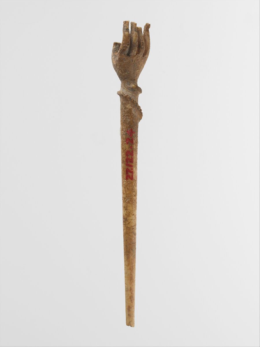 The head of the pin is shaped like a hand.