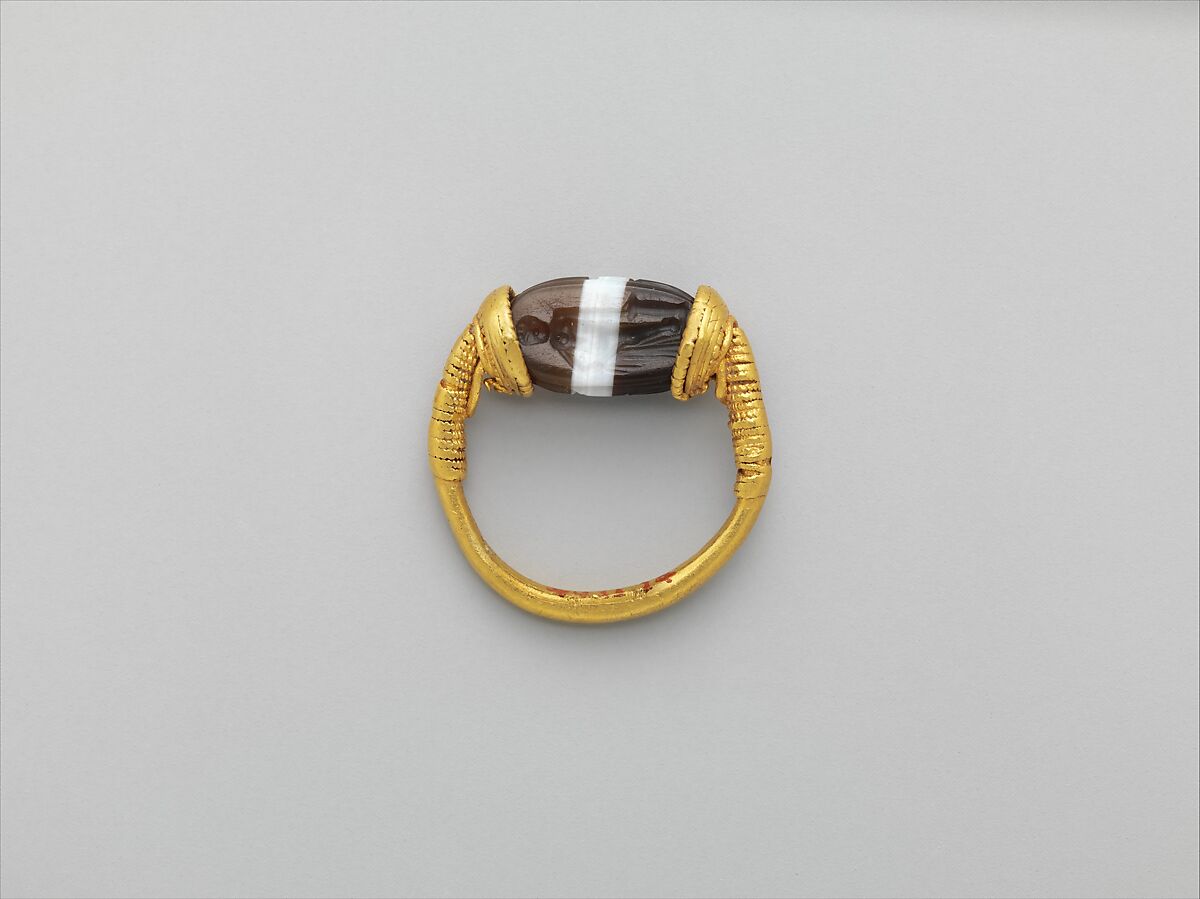 - Title: Gold and banded carnelian ring: on scarab bezel, a youth