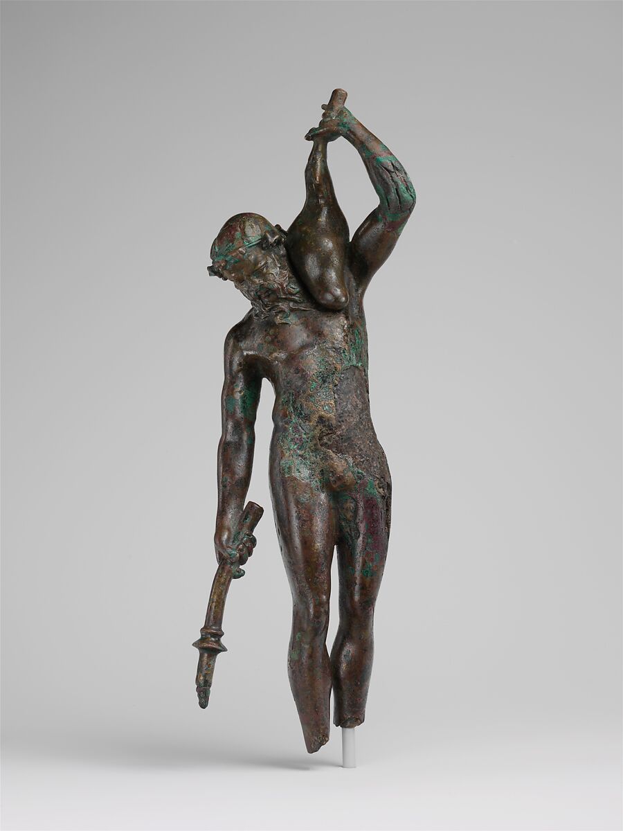 - Title: Bronze statuette of a satyr with a torch and wineskin