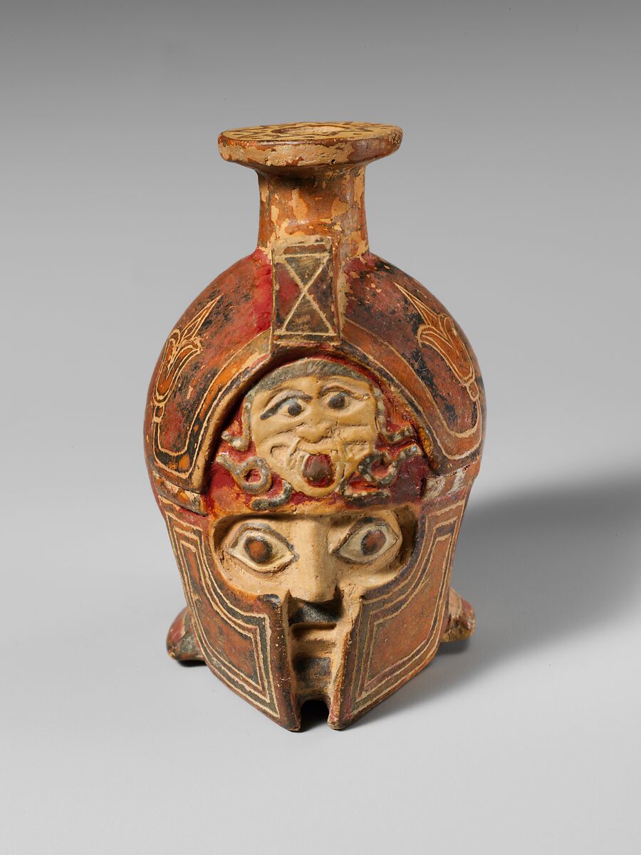 • Title: Terracotta aryballos in the form of a helmeted head