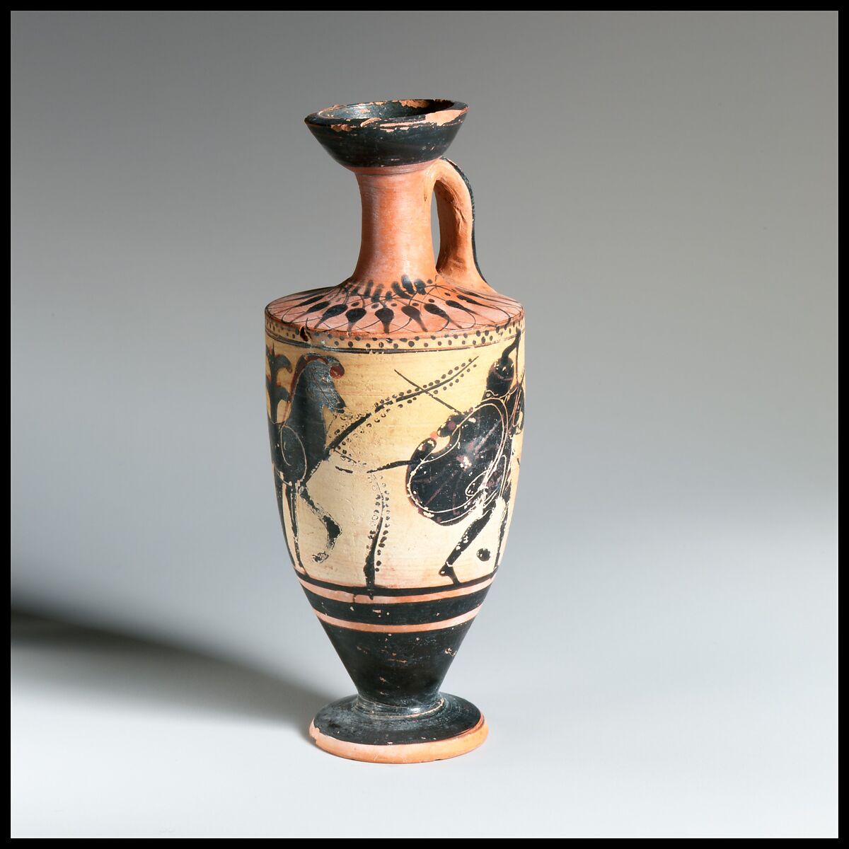 - Medium: Terracotta; black-figure, white-ground