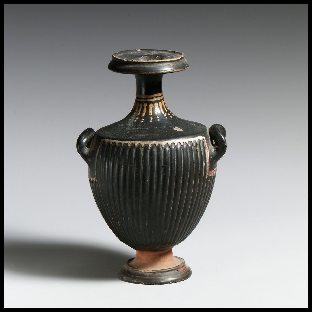 - Title: Terracotta miniature hydria: kalpis (water jar)