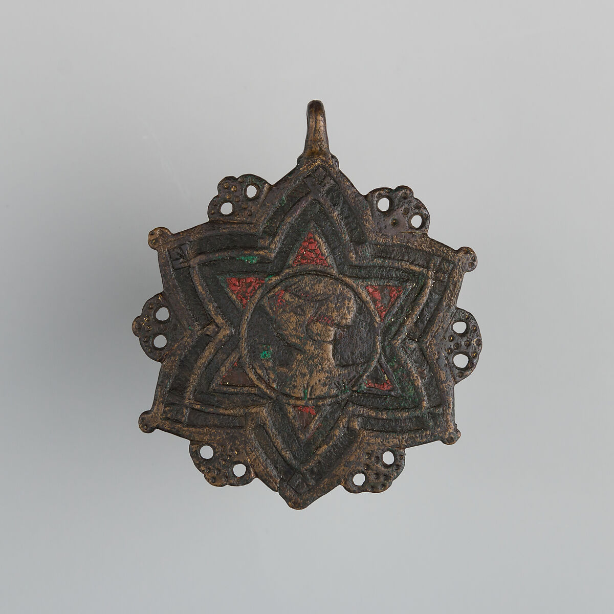 Heraldry, or coat-of-arms, were vitally important in Europe throughout the Middle Ages and the Renaissance. Heraldic emblems were used to identify noble families, cities, regions, and even countries. In addition to being displayed on shields and flags, heraldry was incorporated into architectural decoration on the interior and the exterior of buildings, on furniture, works of art, clothing, and horse equipment. Harness pendants, like this example, would have been attached to a headstall, bridle, or other straps making up the tack of a horse ridden by a nobleman or noblewoman, or a member of their household. Many harness pendants also have decoration that is simply ornamental, or have symbols that are not specifically heraldic in nature.