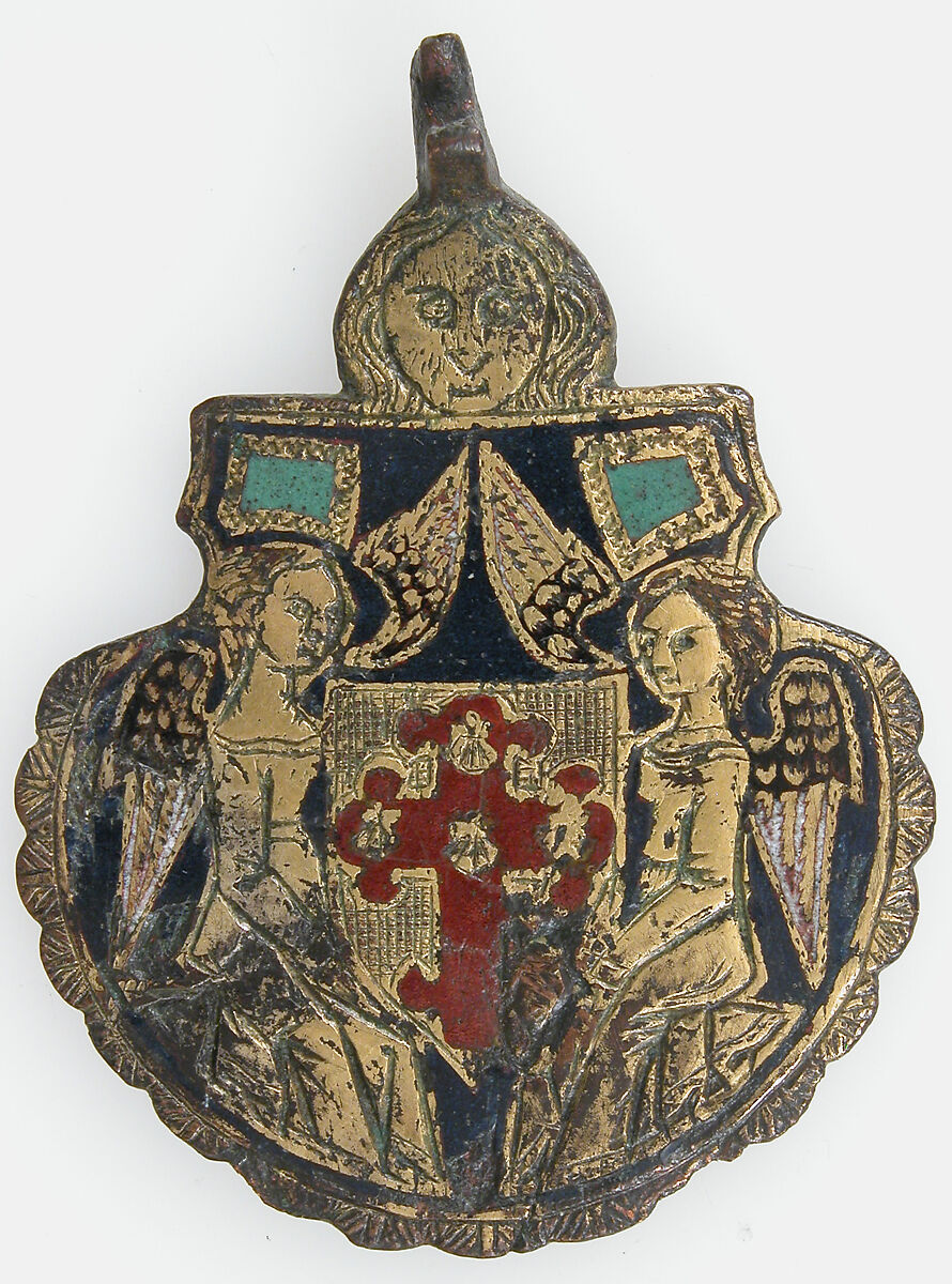 Heraldry, or coat-of-arms, were vitally important in Europe throughout the Middle Ages and the Renaissance. Heraldic emblems were used to identify noble families, cities, regions, and even countries. In addition to being displayed on shields and flags, heraldry was incorporated into architectural decoration on the interior and the exterior of buildings, on furniture, works of art, clothing, and horse equipment. Harness pendants, like this example, would have been attached to a headstall, bridle, or other straps making up the tack of a horse ridden by a nobleman or noblewoman, or a member of their household. Many harness pendants also have decoration that is simply ornamental, or have symbols that are not specifically heraldic in nature.