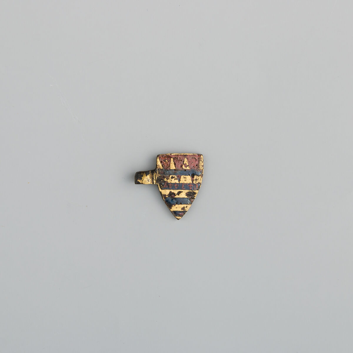Heraldry, or coat-of-arms, were vitally important in Europe throughout the Middle Ages and the Renaissance. Heraldic emblems were used to identify noble families, cities, regions, and even countries. In addition to being displayed on shields and flags, heraldry was incorporated into architectural decoration on the interior and the exterior of buildings, on furniture, works of art, clothing, and horse equipment. Harness pendants, like this example, would have been attached to a headstall, bridle, or other straps making up the tack of a horse ridden by a nobleman or noblewoman, or a member of their household. Many harness pendants also have decoration that is simply ornamental, or have symbols that are not specifically heraldic in nature.