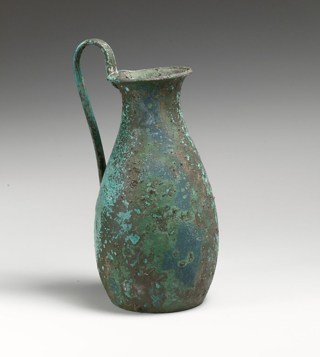 The olpe is a common shape due, certainly, to its simplicity and convenient size. The Greek world, especially Attica, furnishes many variants of terracotta. Bronze examples are better documented in Etruria.