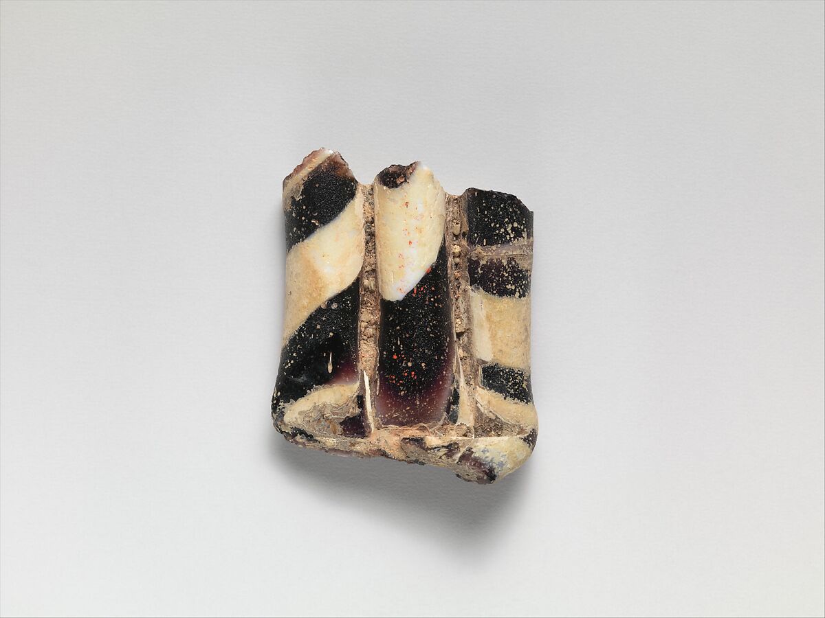 The handle belongs to a type of marbled blown glass ewer (olpa), found principally in northern Italy.