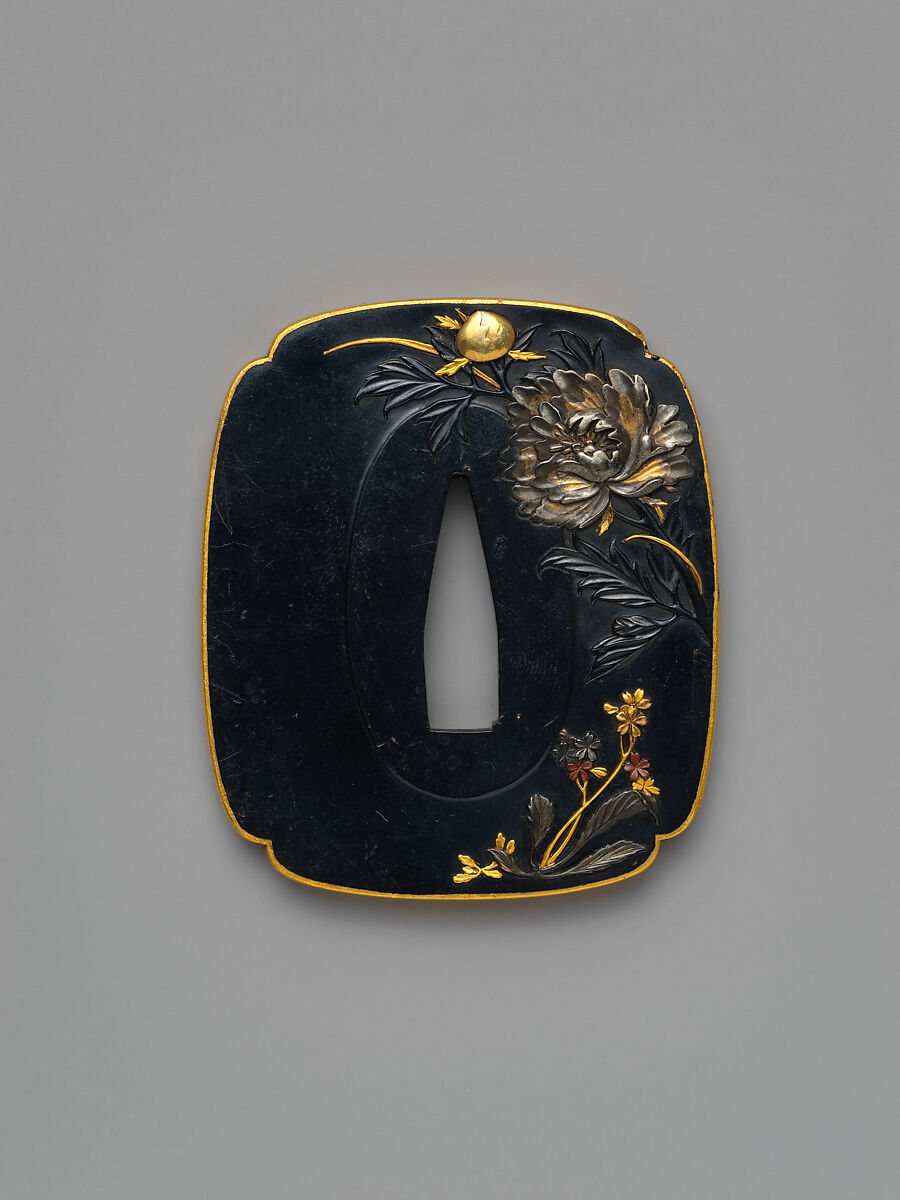 - Title: Sword Guard (Tsuba) Depicting Peony and Butterflies (菊に蝶図鐔)