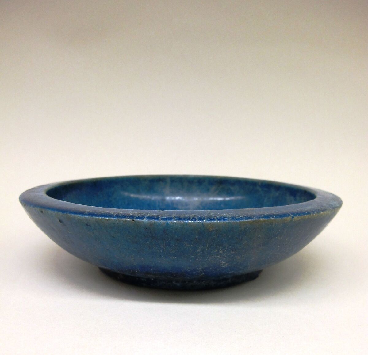 This bowl, preserved intact, is a fine example of Egyptian faience ware. The Egyptians mastered the production of this luxury ware as early as the late Predynastic period (late fourth millennium B.C.). Faience continued to be used for both sacred and secular objects into Hellenistic and Roman times.