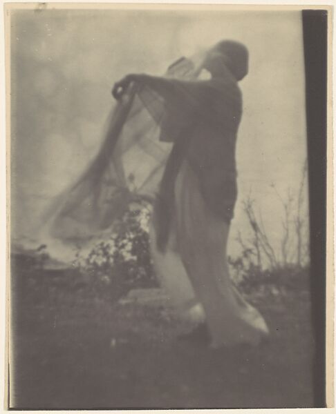 Cunningham’s friend, Clare Shephard, embodies the blowing of the wind by gracefully extending her arm through layers of transparent fabric. The platinum print, soft focus, and allegorical subject reveal the artist’s early interest in Pictorialism, a movement that sought to define photography as a fine art. Later in her career, Cunningham rejected this style in favor of straight photography, which emphasized sharp focus and eschewed the manipulation of negatives or prints.