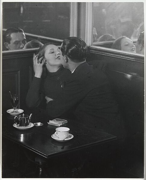 In this photograph, Brassaï's compositional skill is evident in the way he has framed his subjects, each lover's gaze reflected in a mirror. Such artifice and formal elegance, rather than the harsh realities of photographic realism, were of supreme importance to him. Indeed, this and many of his photographs were staged, leading to a complicity between photographer and subject that adds to the picture's sophistication and playfulness.