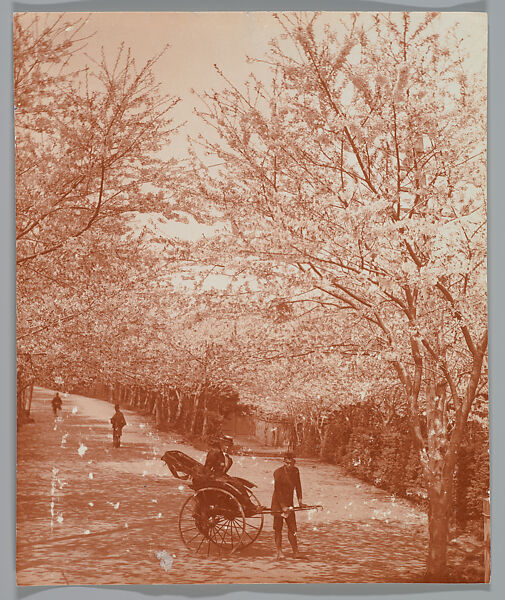 - Title: [Street Lined with Cherry Trees, Woman in Rickshaw]