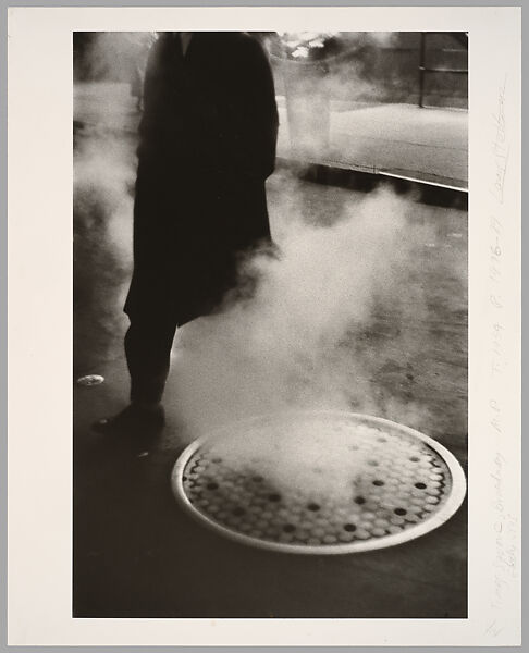 In 1952 Stettner began photographing Times Square at night. He lived not far from the area and was fascinated by the way it came alive after dark with crowds of thrill-seekers and glittering lights, but also by a sense of mystery and unreality not present during the day. Using a small hand-held camera Stettner was able to record scenes in a split-second, such as this one in which a dark headless figure seems to materialize out of the steam before striding off into the darkness. While defying the rules of conventional photography, the photograph is a perfect distillation of the thrilling sense of dynamism and contingency that made Stettner's nocturnal subject so compelling.