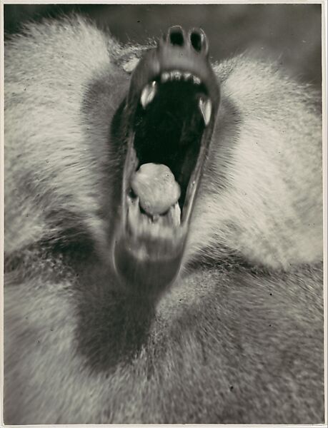 "Here the movement of 1/100th of a second is frozen with a truthfulness to life which neither brush nor pencil could ever surpass," wrote Renger-Patzch of this image in New Camera Views. The next year (1928) he composed a picture book, The World is Beautiful, which treats man-made and natural objects as structural analogues of one another. This organizing principle rejected the visual delight of the atypical or anomalous, so vivid in this picture; consequently the book reproduced a static and conventional "portrait" of the baboon instead of this image.