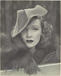 The hats Dietrich wore for the camera were designed for her by John Fredericks and Lily Dache. In the film "Desire" she wore a black version of the felt slouch depicted here; the hunter green version was only for the publicity still. Dietrich went to such lengths to perfect her still portraits because more people saw them than the films. In 1931 the publicity department of just one Hollywood studio distributed almost a million stills to syndicated newspapers and magazines worldwide.