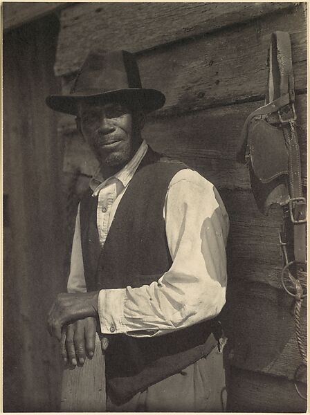 New Yorker Ulmann traveled throughout the South, visiting African American communities. Her photographs display her interest in the preservation of rapidly changing cultures and show a profound respect for her subjects. Man with Bridle is a dignified portrait of a man whose weathered hands rest on a wood post. Gazing out at the viewer, he stands in front of a barn with a horse bridle hanging on a nearby peg.