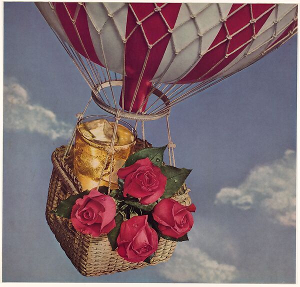 Before ascending to the heavens, this glass of whiskey toured the world. In the pages of LIFE and Newsweek, it could be seen surmounting arctic slopes and traveling by train. It sweated deckside on a luxury liner, rode a Ferris wheel, and went sledding. Meticulously staged by the pioneering color photographer Anton Breuhl, such absurd tableaux conjured worldly associations for his client, the mid-tier Kentucky distiller Four Roses. Against all odds, these eye-catching scenarios were not darkroom fabrications; Bruehl constructed them by hand, with the help of miniaturists, set dressers, and a celebrity florist. Testing appetites for novelty, illusion, and abundance—all standbys of twentieth-century advertising—against the limits of good taste, he wagered that this crisp simulacrum would slake your thirst, then melt into hot air.