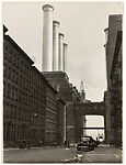 - Title: [City Street Ending at Factory with Four Smokestacks]