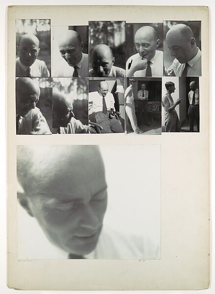 In 1936, when teaching at Black Mountain College in North Carolina, Albers wrote, "I believe now it is time...that we move from looking at art as a part of history to an understanding of art as a part of life." He had brilliantly demonstrated this understanding previously in his photographs. This photomontage, made of images taken during El Lissitzsky's visit to the Bauhaus in 1928, describes the present as a mosaic of preceding moments suspended over the Russian artist's head. The visual mosaic works in the same manner as the bubbles that carry the unuttered thoughts of cartoon characters.