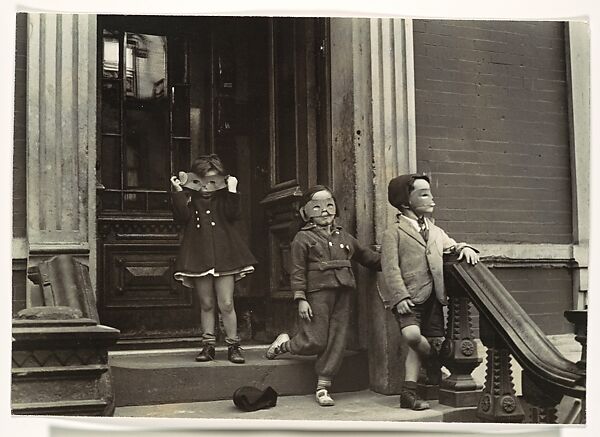 Helen Levitt practiced photography with a small handheld camera on the streets of New York, making tender depictions of ordinary city people, and especially children. The street was a stage for her young subjects, upon which they played games, performed improvisational dramas, and made fantastic, untutored chalk drawings such as this figure with double pupils and a hovering crown. For Levitt, graffiti and children's drawings were present-day emblems of a pre-civilized, magical art, both spontaneous and archetypal.