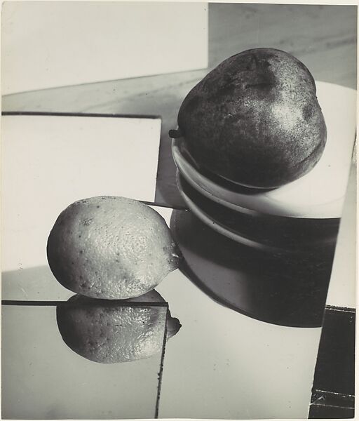 Henri studied painting with Léger and Ozenfant before she took up photography at the Bauhaus. Like the other phenomenological puzzles she constructed with mirrors, this still life demonstrates that in the camera's description reflections are coequal with material realities. In the terms of her picture--if not on the grocer's scale--the doubled lemon weighs precisely as much as the pear.