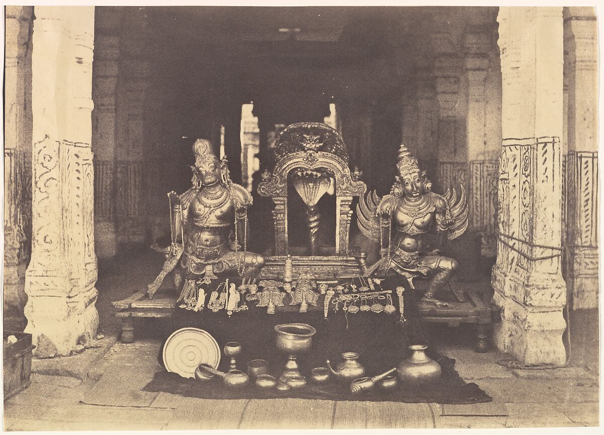 at Srirangam, he recorded a splendid display of its treasures in a photograph that perfectly conveys the shimmering effect of sunlight on lustrous surfaces.