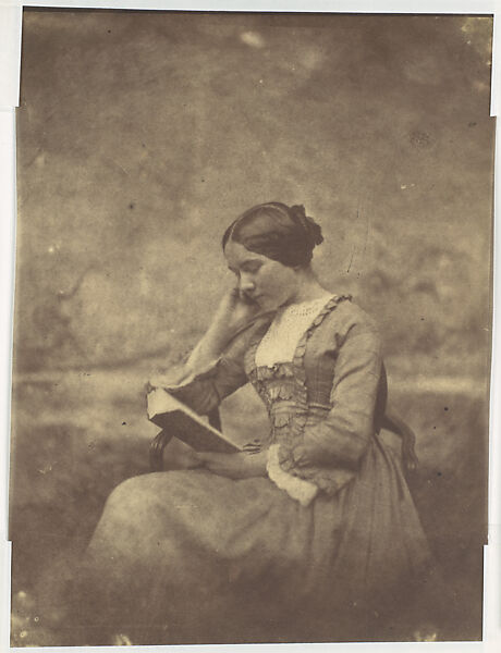 Although better known for his views of Versailles and Saint-Cloud, Robert was a gifted portraitist, as evidenced by this tender depiction of his daughter Henriette-Caroline-Victoire reading. In its quiet contemplative mood and soft atmospheric tonal palette, Robert's rendering transposes the lexicon of contemporary French painting to the new medium. It is no surprise that the photograph recalls Corot's portraits of women reading, as the painter was also a member of the circle at Sèvres.